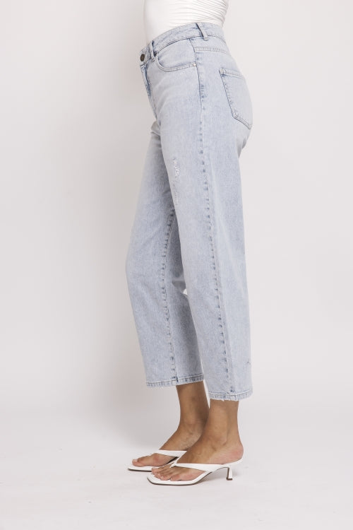 Helle Denim-Waschung mit dezenten Abriebstellen